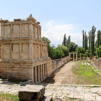 Les bienfaiteurs locaux Ménandre, Eusèbe, Diogène et Attale ont construit ce complexe architectural entre 20 et 60 EC pour honorer Aphrodite et la famille impériale.