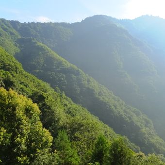 Les pentes de la montagne sont plantées de vergers produisant des pêches miel, des poires et des kakis aux côtés de la forêt ancienne. Cette présence agricole crée un contraste intéressant entre l'agriculture et la forêt naturelle sur les mêmes pentes.