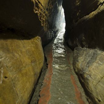Vous accédez à la grotte en montant les escaliers vers l'entrée, puis en traversant les chambres intérieures. La lumière naturelle est limitée à l'intérieur, il est donc utile d'apporter une lampe de poche pour naviguer dans les passages et voir les détails gravés plus clairement.