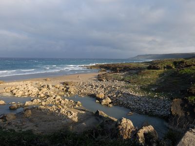 La plage se situe à la jonction des strates rocheuses océaniques et des formations de grès, créant des motifs géologiques distinctifs.