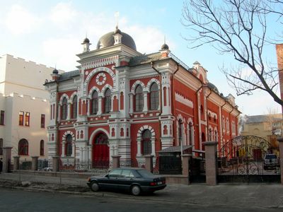 La Grande Synagogue Chorale est une synagogue situé dans le quartier de Podil qui se distingue par son style architectural particulier. L'extérieur comme l'intérieur présentent des détails ornementaux qui témoignent d'une conception soignée.