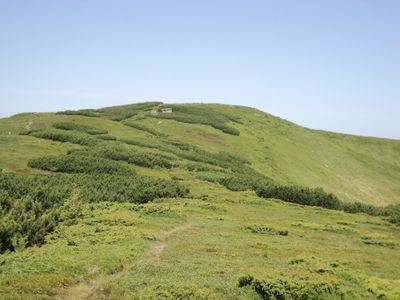 Bratkivska Velyka culmine à 1788 mètres d'altitude, présentant de grands blocs de grès dispersés sur son sommet et ses pentes supérieures.