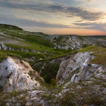 Le parc s'étend sur 3 131 hectares le long de la rivière Oskil, présentant des formations de craie blanche et des berges escarpées dans le paysage ukrainien.