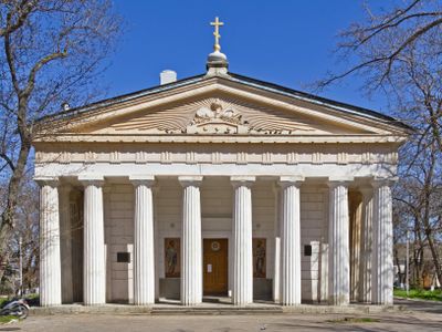 Le bâtiment suit le design du temple antique de Thésée à Athènes, constituant un exemple inhabituel du renouveau grec dans l'architecture orthodoxe.