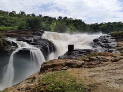 Murchison Falls est une cascade du Nil Victoria dans le nord de l'Ouganda, où l'ensemble du fleuve est comprimé à travers un étroit passage rocheux de seulement 7 mètres de large. L'eau se précipite sur environ 43 mètres, créant une barrière naturelle qui force tout le débit du fleuve à passer par un seul point.