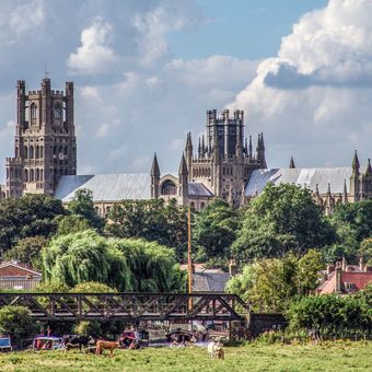 La ville s'élève sur une butte d'argile à environ 26 mètres au-dessus des marais environnants, traversés par la rivière Great Ouse. Des ruelles étroites montent de la place du marché vers la cathédrale, tandis que des maisons de différentes époques bordent les rues et ouvrent la vue sur la campagne plate.