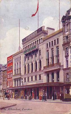 L'Alhambra Theatre était une salle de musique et de théâtre située à Leicester Square dans le West End londonien. Son design comportait une grande rotonde centrale avec des sièges disposés sur le plancher principal et dans des loges privées à travers le bâtiment.