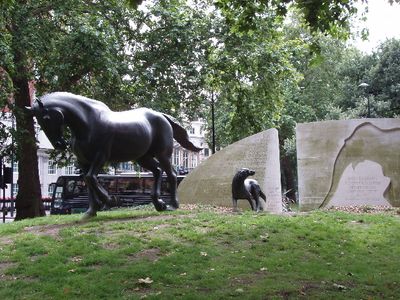 Inauguré en 2004, ce mémorial commémore des millions d'animaux ayant servi dans les conflits militaires britanniques depuis la Première Guerre mondiale.