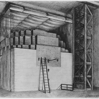 Le réacteur Chicago Pile-1 contenait quarante mille blocs de graphite disposés dans une structure en bois de sept mètres de large et six de hauteur.