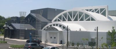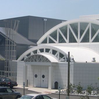 Le Musée de l'Holocauste de l'Illinois présente des expositions sur le génocide et les droits humains sur plusieurs étages d'un bâtiment bicolore.