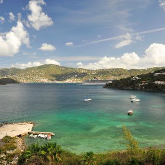 Le port de Charlotte Amalie accueille quotidiennement de grands paquebots de croisière, tandis que l'aéroport propose des liaisons directes vers plusieurs villes des États-Unis. Les visiteurs voyageant avec une voiture de location doivent se souvenir que la circulation se fait à gauche et que les routes en colline peuvent devenir étroites et sinueuses.