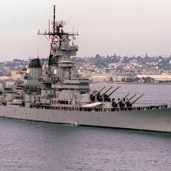 Ce navire détient le record avec 19 étoiles de bataille comme cuirassé le plus décoré de la marine américaine. Les installations à bord allaient de sa propre boulangerie à un bureau de poste pour soutenir l'équipage pendant les longs déploiements.