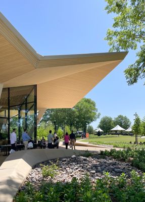 Le toit du batiment presente une structure en beton fluide qui relie les espaces interieurs et dirige la lumiere naturelle a travers les galeries. Ce design cree une experience architecturale surprenante ou l'observation de l'art s'entrelace avec la structure elle-meme.