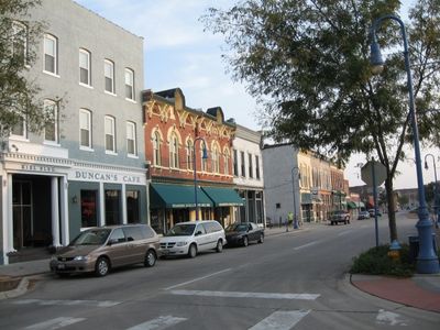 Le centre-ville autour de Pearl Street se parcourt facilement à pied et dispose de plusieurs parkings publics près des bâtiments anciens. Les visiteurs venant de l'aéroport d'Omaha trouveront la ville à environ 16 kilomètres (10 miles) au sud du terminal de l'autre côté du fleuve.