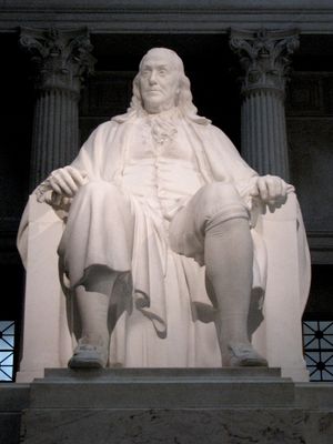 Le Mémorial National Benjamin Franklin présente une statue colossale de 6 mètres de hauteur pesant 27 tonnes, montée sur un piédestal de 83 tonnes en marbre Seravezza blanc.