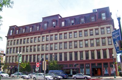 Le Cannon Building est une structure commerciale en brique de cinq étages située à Monument Square au centre historique de Troy. Sa facade affiche un motif de liaison flamande sur 24 baies, le rez-de-chaussée préservant le magasin original tandis que les étages supérieurs servent de chambres d'hôtel.