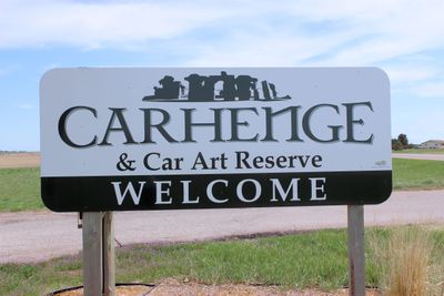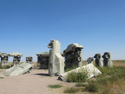 Carhenge est une sculpture de voitures dans le comté de Box Butte, au Nebraska, dressée sur un vaste champ herbeux près d'Alliance. Les véhicules forment un cercle avec un fer à cheval central et un groupe talon séparé, certaines voitures enterrées verticalement et d'autres reposant horizontalement au-dessus.