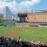 Oriole Park at Camden Yards est un stade de baseball dans le centre de Baltimore, aux États-Unis. La façade extérieure en brique rouge s'étend le long de plusieurs îlots urbains, tandis que l'entrepôt historique du chemin de fer B&O longe toute la longueur du champ droit.
