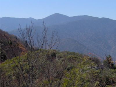Le mont Guyot atteint une altitude de 2018 mètres, présentant des forêts denses de sapins Fraser et une végétation épaisse sur ses deux sommets entre Tennessee et Caroline du Nord.