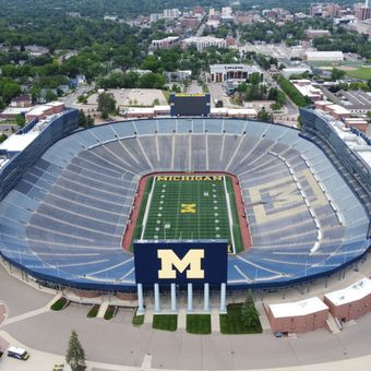 Le Michigan Stadium est une enceinte pour les matchs de football américain de l'Université du Michigan à Ann Arbor et accueille plus de 107 000 personnes. L'installation a une forme de cuvette aux extrémités ouvertes et se situe en grande partie sous le niveau du sol, avec des gradins qui montent de manière abrupte vers le haut.