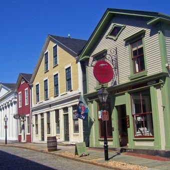 Les rues pavées d'origine et les lampadaires à gaz conservent l'apparence exacte d'un port baleinier américain du XIXe siècle.