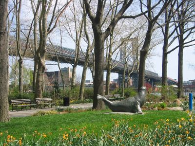 Le East River Park est un grand espace public le long de la rive orientale de Manhattan avec des terrains sportifs, des aires de jeux et des chemins pour la course et le vélo. Les terrains incluent différentes zones conçues pour la détente et les activités en plein air.