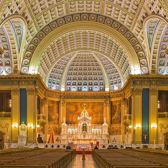 La Basilique Notre-Dame-des-Douleurs est une église aux styles architecturaux du Renouveau Renaissance située à Chicago. L'édifice offre des intérieurs ornés avec des plafonds hauts, des colonnes décoratives et des vitraux colorés qui projettent la lumière en motifs teintés.