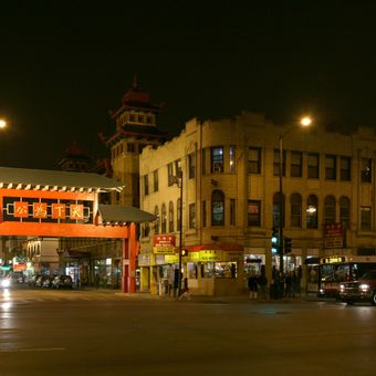 Chinatown est un quartier d'origine chinoise situé à Chicago le long de l'avenue Wentworth et de la route Cermak. Des portes rouges marquent l'entrée des rues qui accueillent des restaurants, des magasins spécialisés et des bâtiments reflétant l'architecture chinoise traditionnelle.