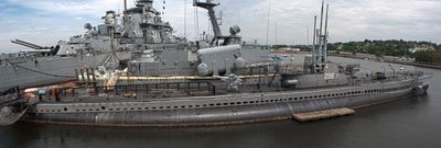 Le USS Lionfish, sous-marin de classe Balao mesurant 95 mètres de long, se dresse comme navire préservé au musée maritime Battleship Cove.