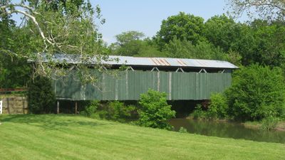 Le pont représente les méthodes d'ingénierie américaines du XIXe siècle, avec sa charpente en bois et son toit métallique illustrant les techniques de construction du transport rural.
