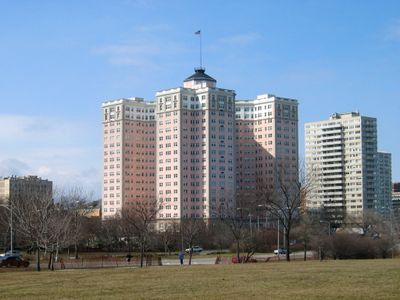 Les Appartements Edgewater Beach, construits en 1928, se distinguent comme structure rose emblématique le long de Lake Shore Drive.