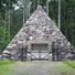 Une pyramide en pierre, construite avec des matériaux locaux grâce à un système ferroviaire temporaire, indique l'emplacement exact de la cabane natale.