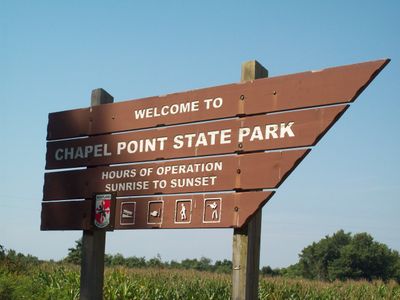 Le Parc d'État de Chapel Point s'étend sur 332 hectares de terrain, avec une zone riveraine le long de la rivière Port Tobacco.