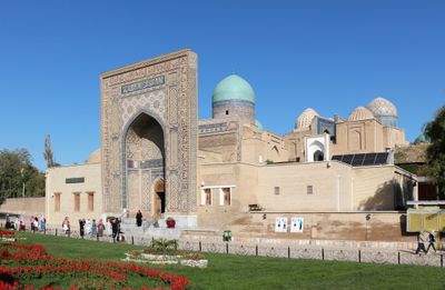 Construite entre le XIe et le XVe siècle, cette nécropole abrite la tombe de Qusam ibn Abbas, cousin du Prophète Muhammad qui introduisit l'Islam en Asie centrale.