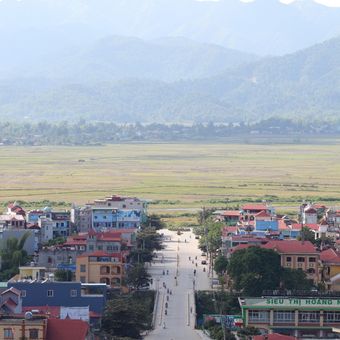 La vallée de Muong Thanh contient la plus grande zone rizicole du nord-ouest du Vietnam, entourée de montagnes formant une configuration géographique en cœur.