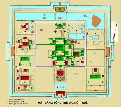 La section intérieure contient des palais, des temples et des jardins qui reflètent les traditions architecturales vietnamiennes suivant les principes du feng shui.