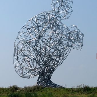 Exposure est une structure en acier de 26 mètres de haut en forme de figure humaine accroupie, positionnée sur la digue Houtribdijk entre deux grands lacs. La construction se compose de 5000 composants reliés par 14284 boulons, pesant au total 60 tonnes.
