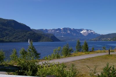 La route E39 longe certaines sections du fjord, tandis que des services réguliers de ferry relient les localités des deux rives.