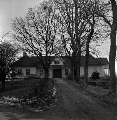 Le bâtiment principal, photographié par Klaus Forbregd en 1959, illustre les éléments architecturaux caractéristiques des domaines agricoles norvégiens.