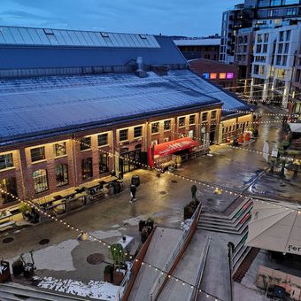 Vulkan s'étend le long de la rivière Akerselva entre Grünerløkka et le centre d'Oslo, avec son architecture moderne, ses restaurants, ses hôtels et ses espaces de bureaux.