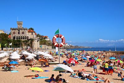 Tamariz est une plage de la côte atlantique à Estoril avec du sable doré et des eaux calmes idéales pour la baignade. Une longue promenade pavée longe le front de mer et se connecte aux villes voisines et aux commodités locales.