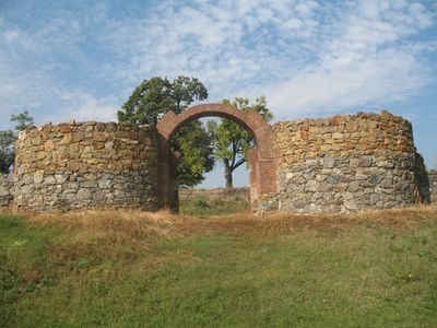 La forteresse présente les vestiges d'un système de chauffage sophistiqué dans un bâtiment à plusieurs nefs du IIe siècle.