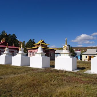 Dans le monastère se trouve le temple Devajin Dugan, qui affiche des représentations détaillées du cycle du Samsara et des portraits de lamas révérés. Au centre du temple se trouve une grande statue de Bouddha dorée qui domine l'espace.