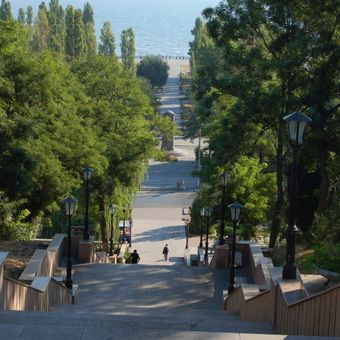 L'escalier commence près de la Maison Tchaïkovski et s'étend jusqu'à la Promenade Pouchkine, reliant des sites culturels majeurs de Taganrog.