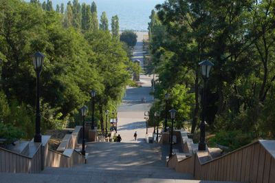 L'escalier permet aux piétons d'accéder directement entre la partie haute de Taganrog et le front de mer, offrant une alternative aux routes.