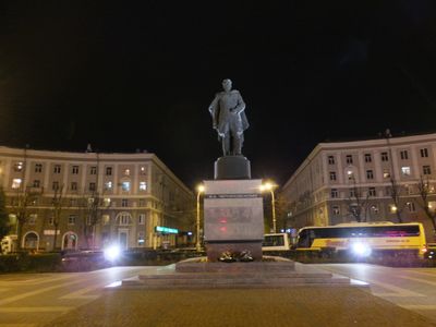 Le Monument Chernyakhovsky est une statue en bronze d'un commandant militaire qui s'eleve sur un piedestal de granit rose de Pavlovsky et de beton. La figure se dresse de maniere prominente sur la place, avec la gare ferroviaire a proximite servant de repere clair pour l'orientation.